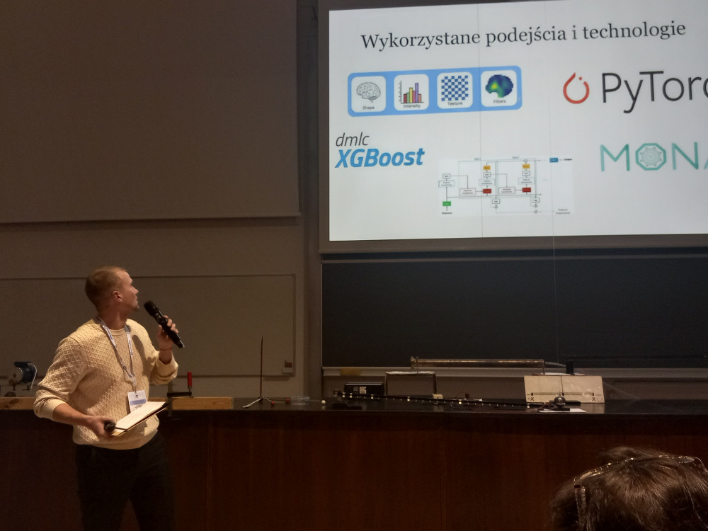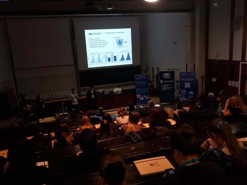• Najlepszy posterWiktoria Nawrocka, Politechnika Gdańska. Tytuł plakatu: "Assessment of the Probability of Patient Assignment to Cerebral Aneurysm Risk Groups Based on Machine Learning Techniques". Skład zespołu: dr inż. Patryk Jasik, inż. Piotr Hajduk, inż. Paweł Rybczyński, lic. Wiktoria Nawrocka, inż. Cezar Roman, inż. Emil Laurentowicz.