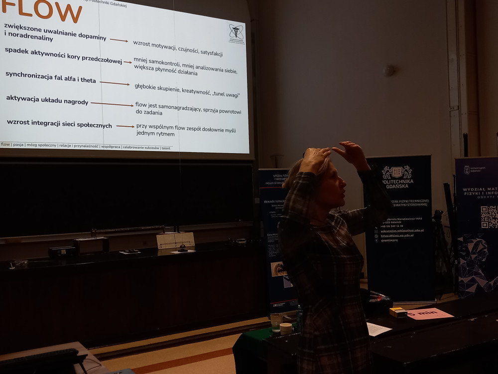Sobotnie sesje otworzył wykład dr hab. Joanny Mytnik, prof. PG – liderka zespołu Centrum Nowoczesnej Edukacji na Politechnice Gdańskiej. Tytuł wykładu: „Koło naukowe jako „mózg rozszerzony": co o pasji, uczeniu się i współdziałaniu mówią badania neuronaukowe?”
