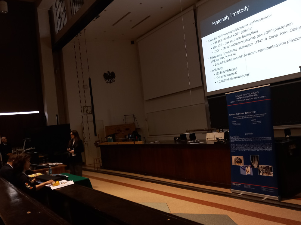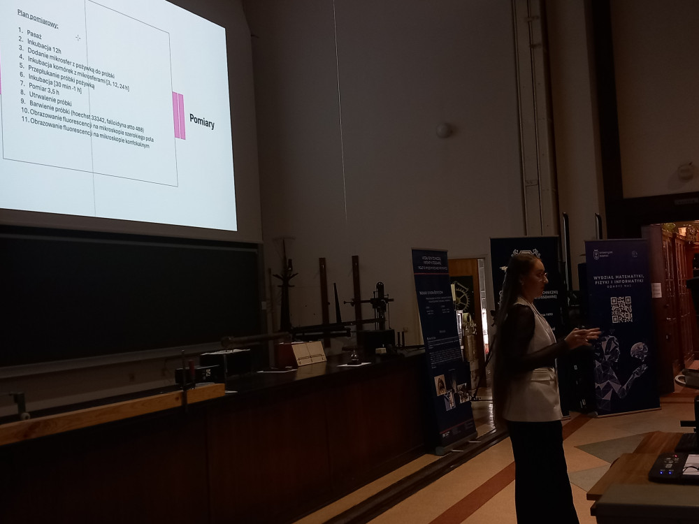 • Najlepsze wystąpienieJulia Urbaniak, Uniwersytet Jagielloński. Tytuł prezentacji: „Komórki wychodzą z formy: obserwacje komórek po potraktowaniu blebbistatyną, cytochalazyną oraz Y-27632” Tematyka prezentacji: Biofizyka; Autorzy: Julia Urbaniak, Zenon Rajfur, Joanna Hajduk; Uniwersytet Jagielloński.